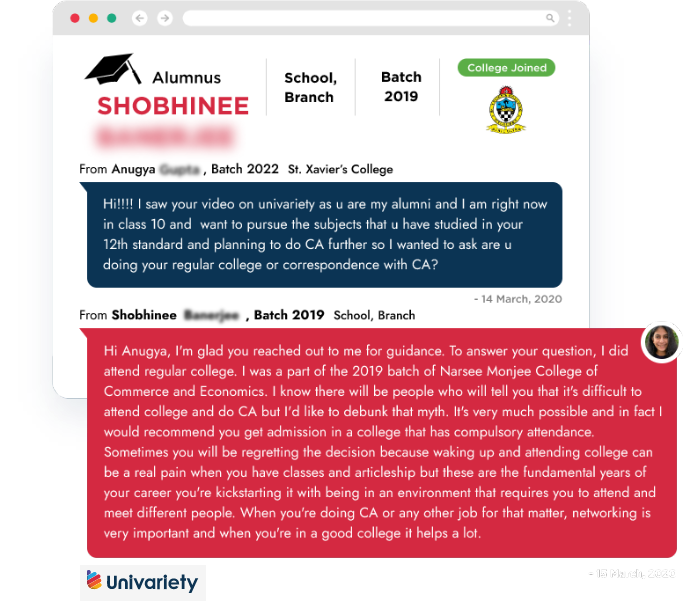 There's no better way to seek uidance from someone who's been there and done that. Students can reach out to their seniors from across batches and campuses to ask anything and everything about career clarity.